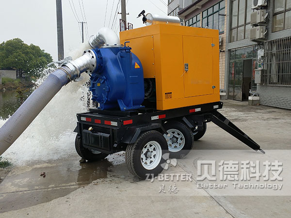 湖北荊州應(yīng)急局驗收貝德科技半架式四輪移動排澇泵車