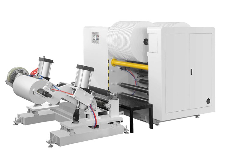 該機(jī)采用電腦控制,光電跟蹤糾偏系統(tǒng),收卷張力控制由磁粉離合器通過PLC觸摸屏實(shí)現(xiàn)自動(dòng)張力控制。放卷張力由磁粉制動(dòng)器、自動(dòng)張力控制。收卷軸采用氣脹軸,配合自動(dòng)氣壓,使收卷軸可自動(dòng)升降。變頻器控制整機(jī)工作速度,配有自動(dòng)計(jì)米裝置。具有切口光滑,收卷端面整齊,便于后續(xù)加工等優(yōu)點(diǎn)。