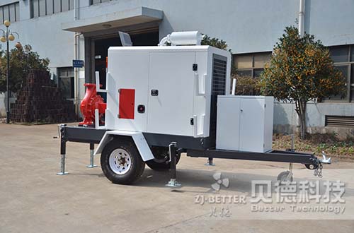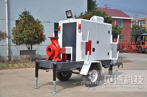 XBC應(yīng)急移動泵車組整套包括:泵,柴油機,油箱,水箱,電瓶,控制柜,兩輪支撐,拖車和剎車等部件。