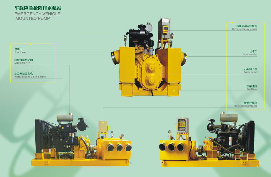 車載移動應(yīng)急排水系統(tǒng)解決在不同環(huán)境中搶險設(shè)備對電源系統(tǒng)依靠,同時可作備用電源,照明系統(tǒng)等使用。